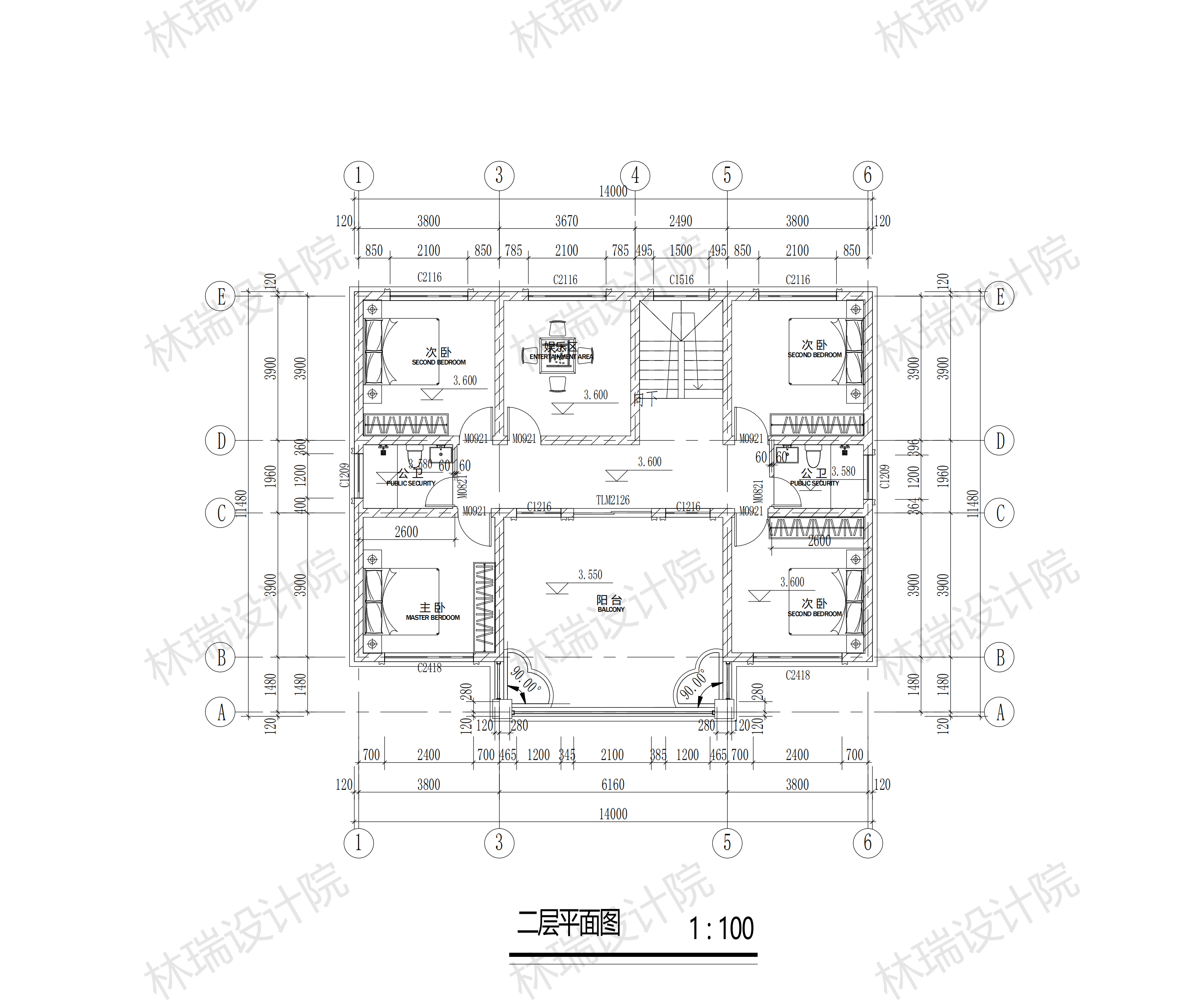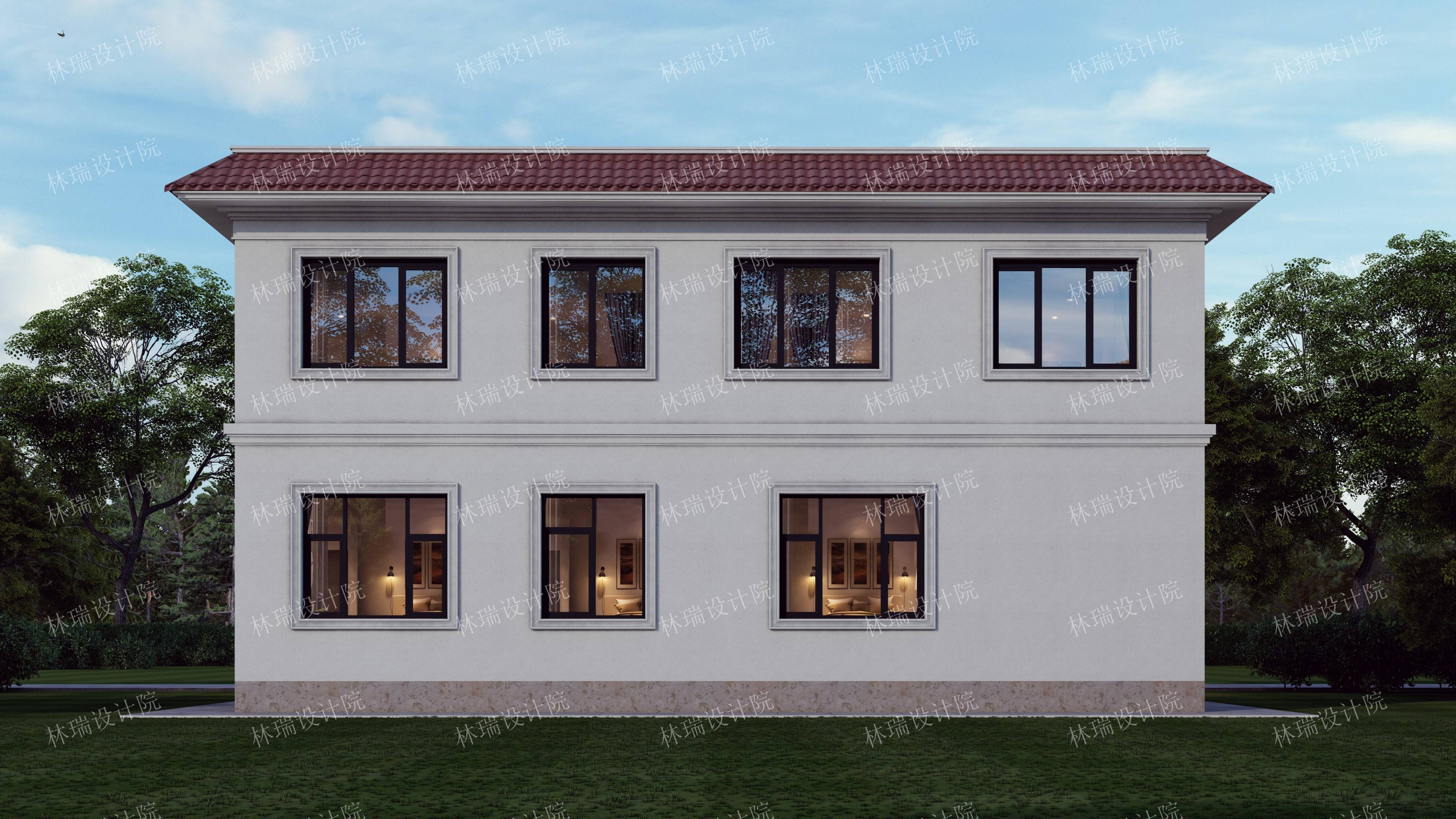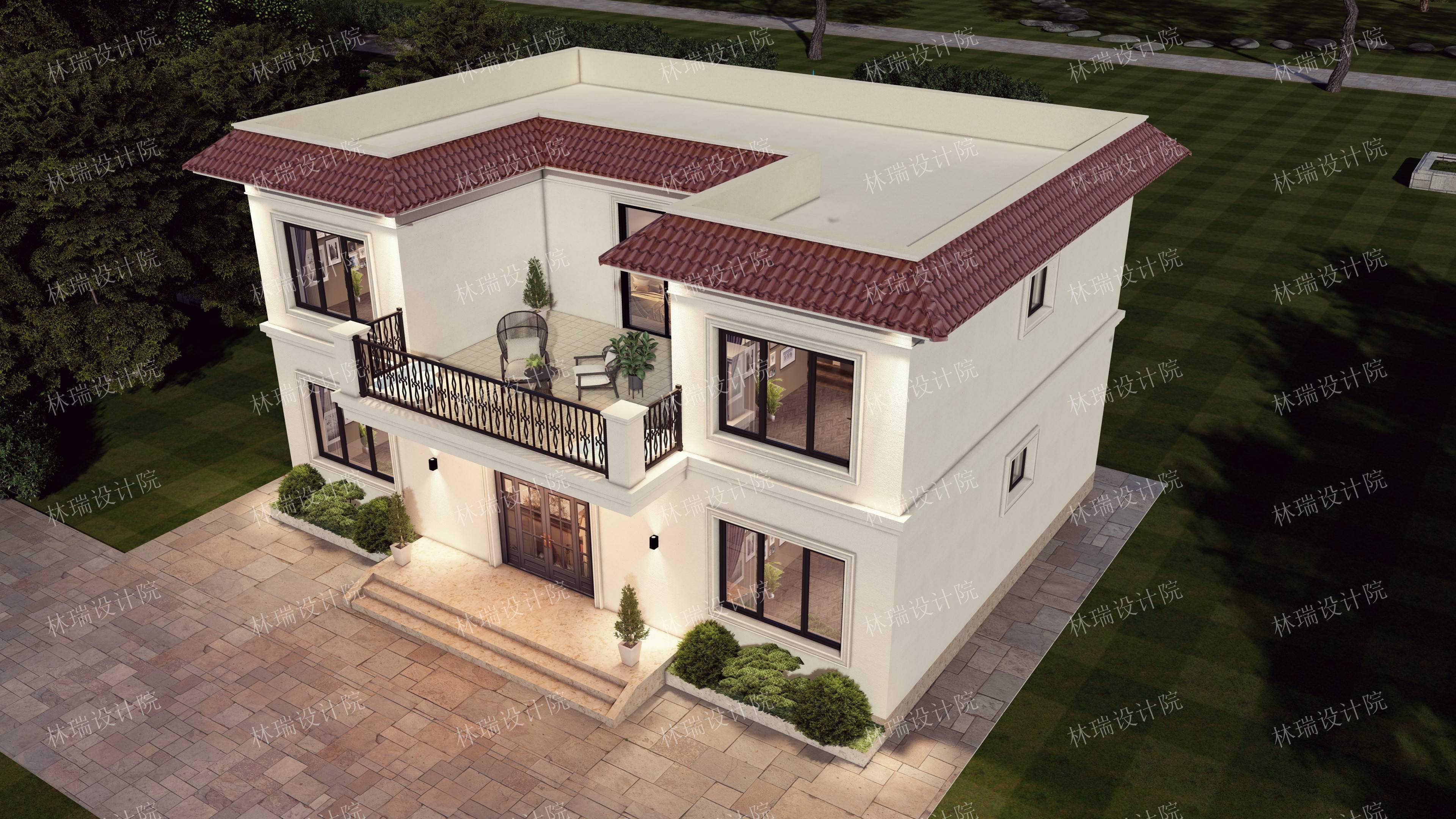 有露台,无挑空,平屋顶,四开间,7-8卧室