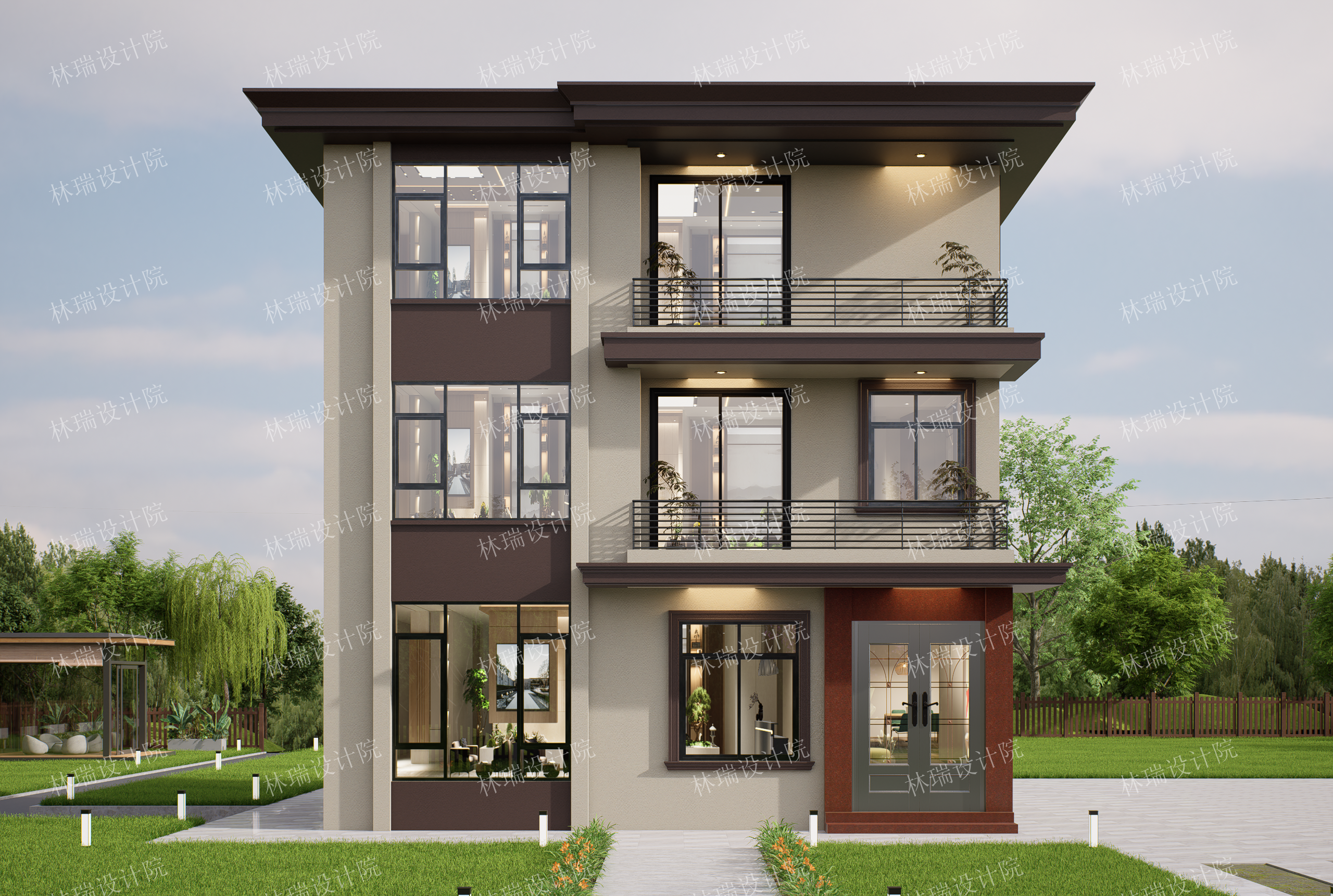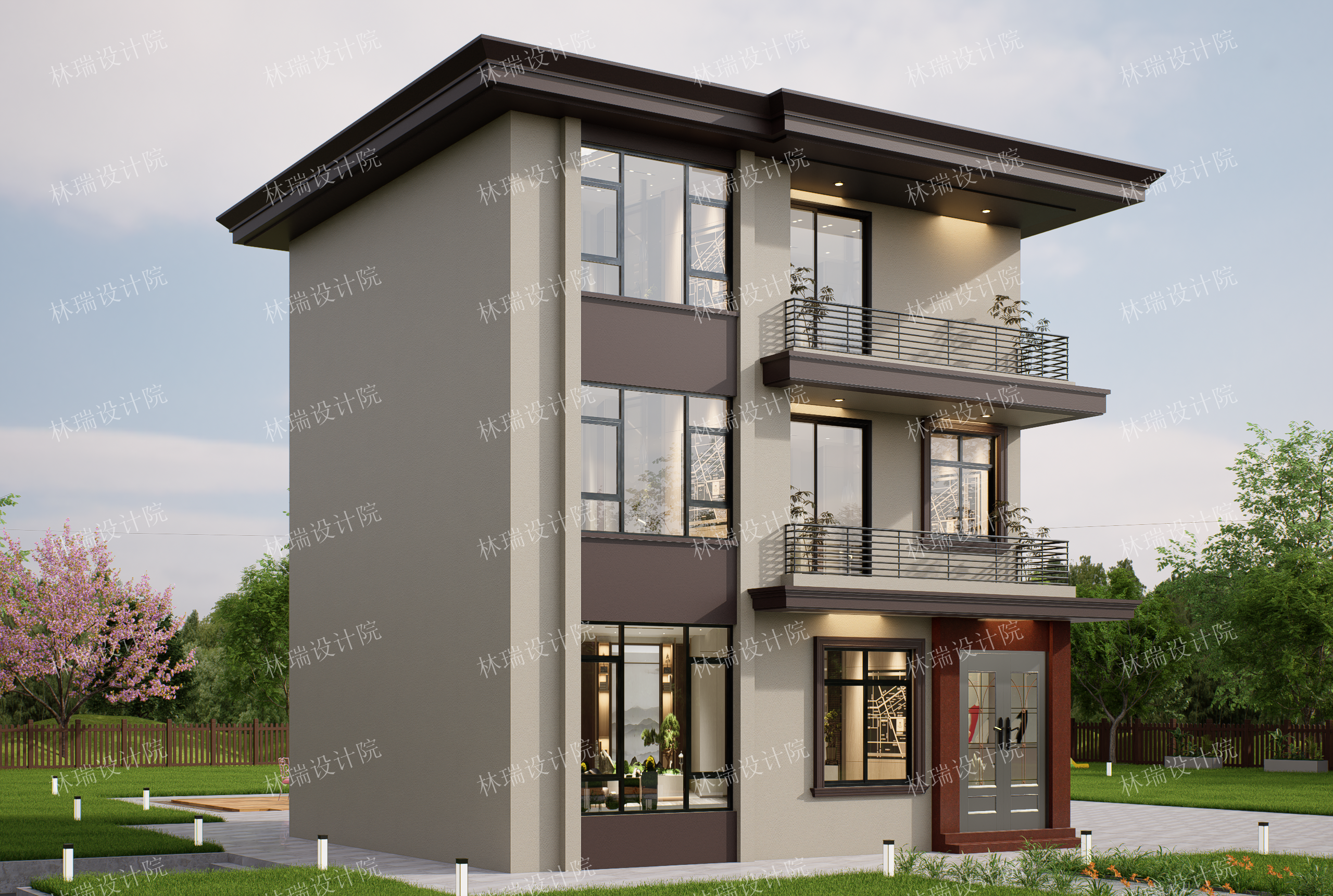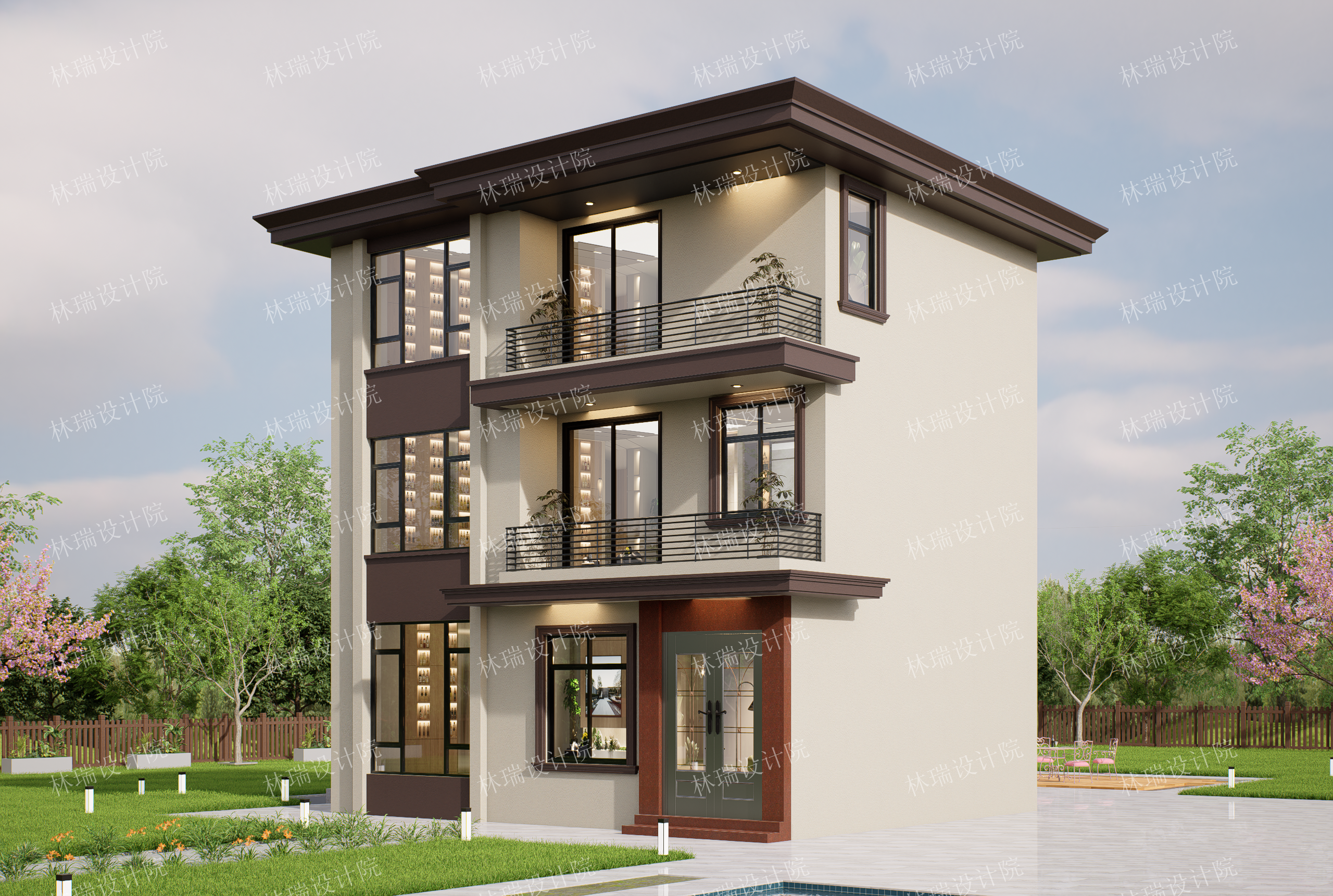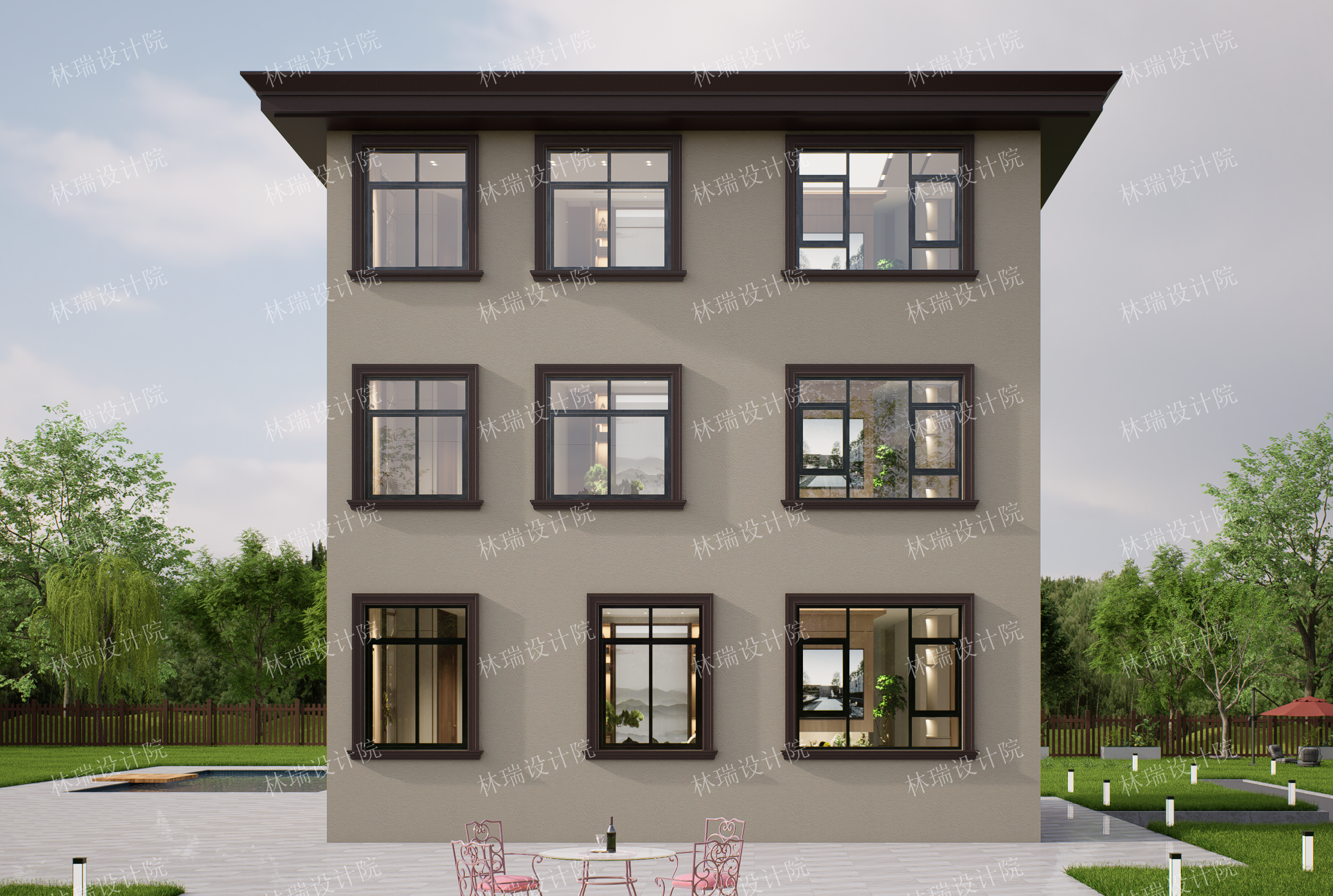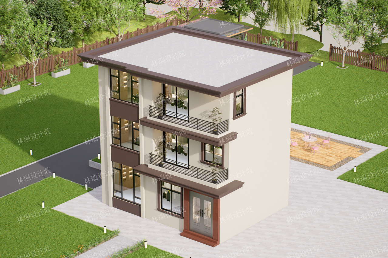 无挑空,平屋顶,三开间,5-6卧室