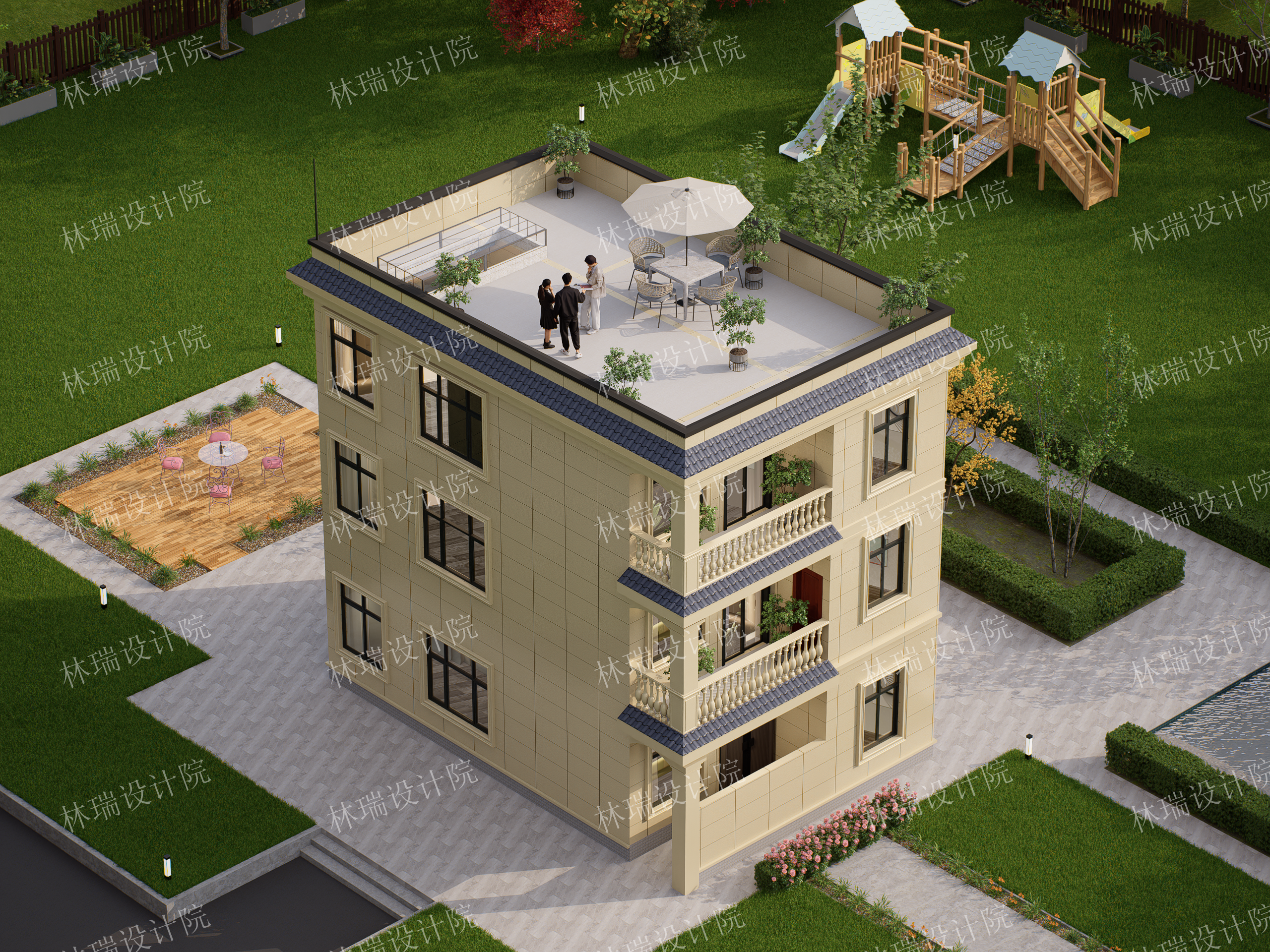 有露台,平屋顶,两开间,5-6卧室
