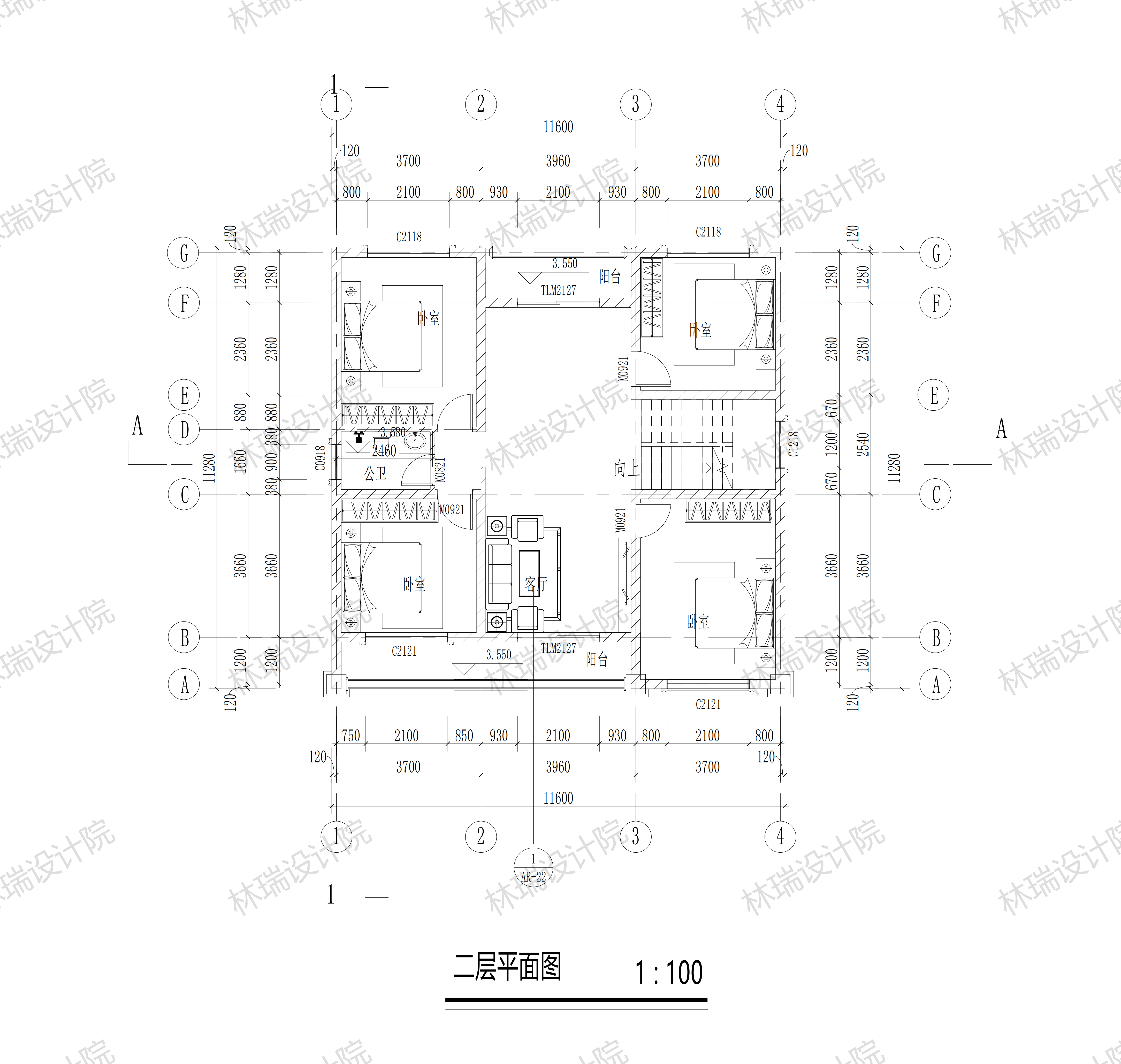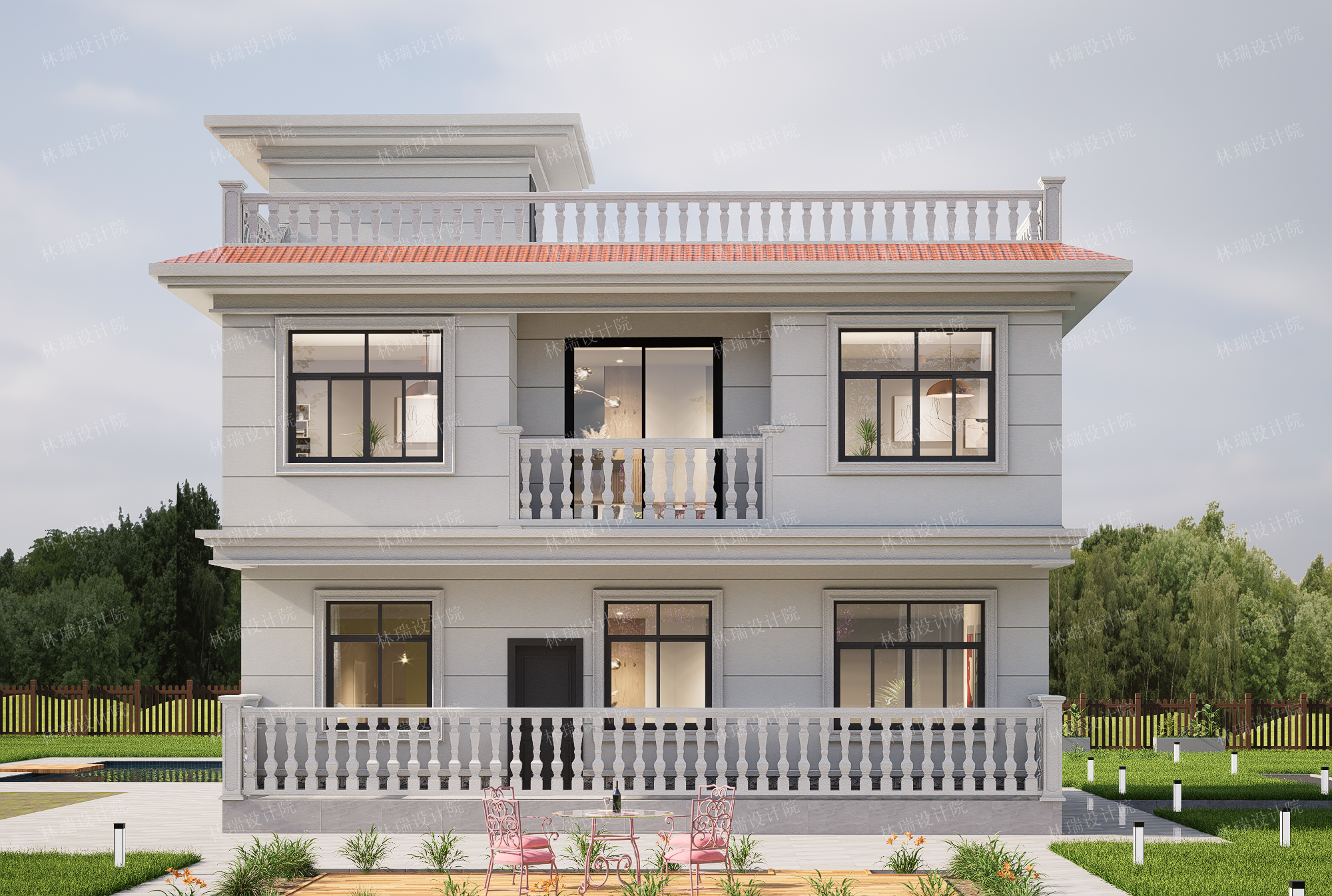有露台,无挑空,平屋顶,三开间,5-6卧室